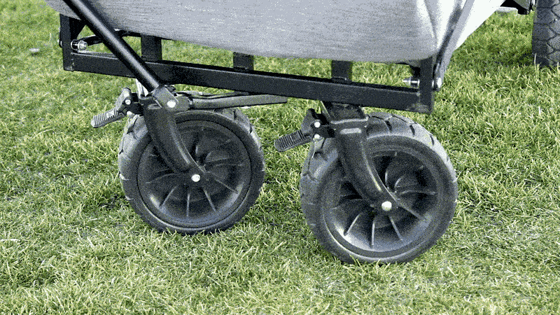 Large 3" wide all-terrain wheels with coaxial steering, makes it easy to navigate various terrains even with heavy loads. Plus, the front wheels include locks to keep it still wherever you chill.